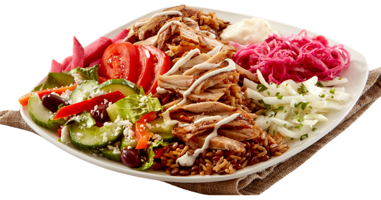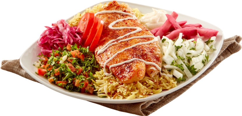 850 – 1200 Cals. Pieces of tender BBQ chicken breast, marinated with our secret spices, roasted on a skewer. We serve with hummus or garlic sauce, tomatoes, onions, cabbage, turnip, lettuce, Tahini, and hot sauce as your choice.