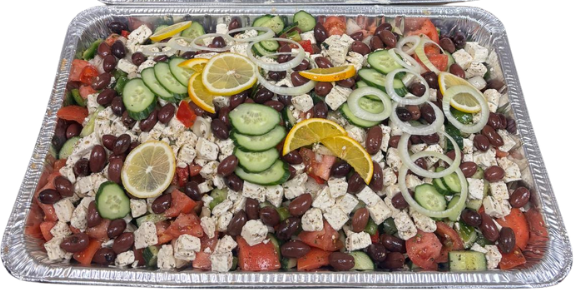 A classic mix of cucumbers, tomatoes, red onions, olives, and feta cheese, tossed in olive oil and herbs. Light, refreshing, and full of Mediterranean flavor.